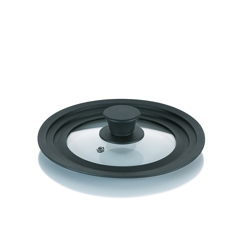 Qopqoq korpusi yuqori mustahkamlikka ega shishadan tayyorlangan bo‘lib, pishirish jarayonini qopqoqni ochmasdan kuzatish imkonini beradi. Qirrasi issiqqa chidamli silikon materialdan tayyorlangan — bu idish chetiga mahkam yopishadi, issiqlikni ichkarida ushlab turadi va sachrash xavfini kamaytiradi. Qopqoq tutqichi ham shu issiqqa chidamli material bilan qoplangan bo‘lib, yuqori haroratda ham qulay ushlashni ta’minlaydi. Qopqoqda bug‘ chiqishi uchun klapan mavjud bo‘lib, bu xavfsiz pishirish va idish ichidagi bosimni nazorat qilishga yordam beradi.