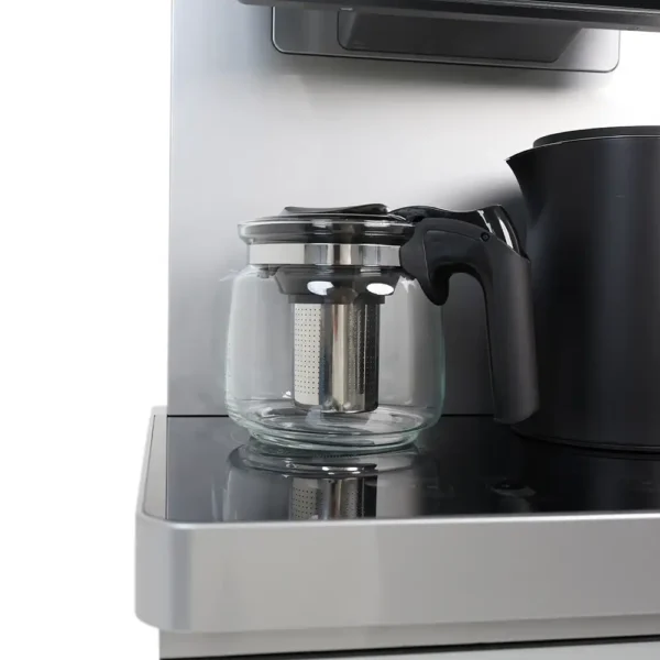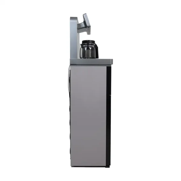 Texnik xususiyatlari: Kategoriya — mustaqil turadigan suv sovutgichi; butilkani o‘rnatish — ichki (pastki o‘rnatish); qo‘shimcha rejim — iliq suv; choynak funksiyasi — haroratni qo‘lda sozlash (45°C – 100°C); choynakni isitish — haroratni 12 soatgacha saqlash; energiya tejash — ichki quvvat bloki; boshqaruv — sensorli panel + pult; mini-bar — mavjud; xavfsizlik — bolalar uchun himoya.