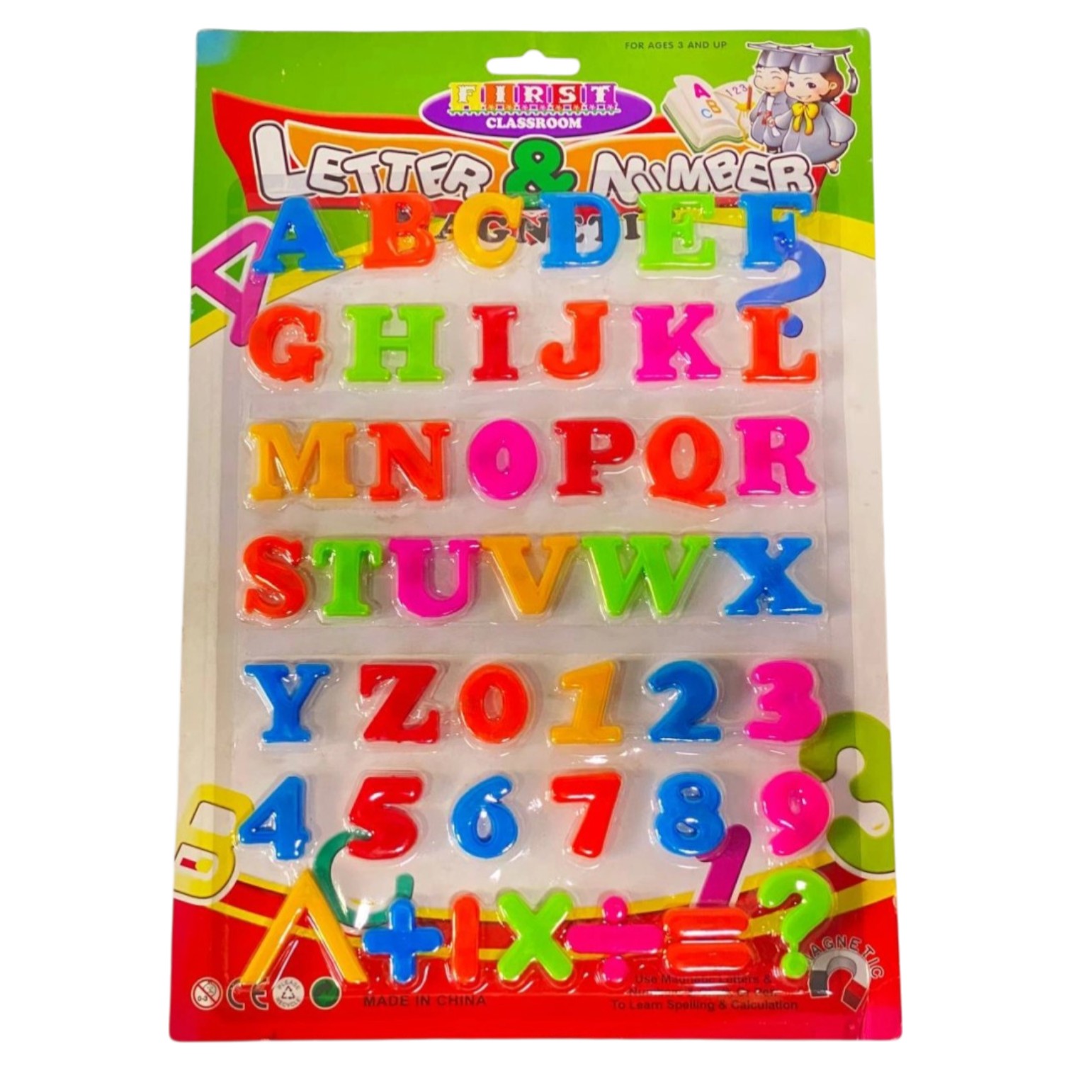 Letter & Number: Magnitli alifbo (lotincha) — bu bolalar uchun mo‘ljallangan magnitli harflar va raqamlar to‘plami bo‘lib, unda lotin alifbosi va raqamlarni o‘rganish mumkin. Ushbu to‘plam bolalarga o‘yin orqali harflar va raqamlarni tanishni, o‘qish, yozish va hisoblash ko‘nikmalarini rivojlantirishga yordam beradi.