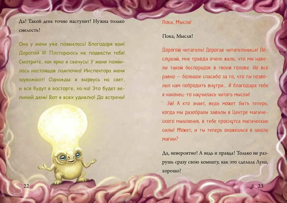 Лучше сядь, а то сейчас расскажу тебе ТАКОЕ, что ноги подкосятся! Только представь: я украла невообразимо ВЕЛИКОЕ ЗАКЛИНАНИЕ, хи-хи. С его помощью можно отправиться в самую глубину мозга и ЧИТАТЬ МЫСЛИ другого человека. Круто, да? И теперь я хочу проверить это заклинание в действии...Согласен стать моим подопытным кроликом-компаньоном в этом, я уверена, ЗАХВАТЫВАЮЩЕМ ПРИКЛЮЧЕНИИ? Может, конечно, оно и не совсем безопасное, зато бесплатно! Заодно узнаем, есть ли утебя в голове что-то еще, кроме опилок, хе-хе. Ладно, шучу. Короче говоря, хватит терять время - наше путешествие вот-вот начнется на первой странице!