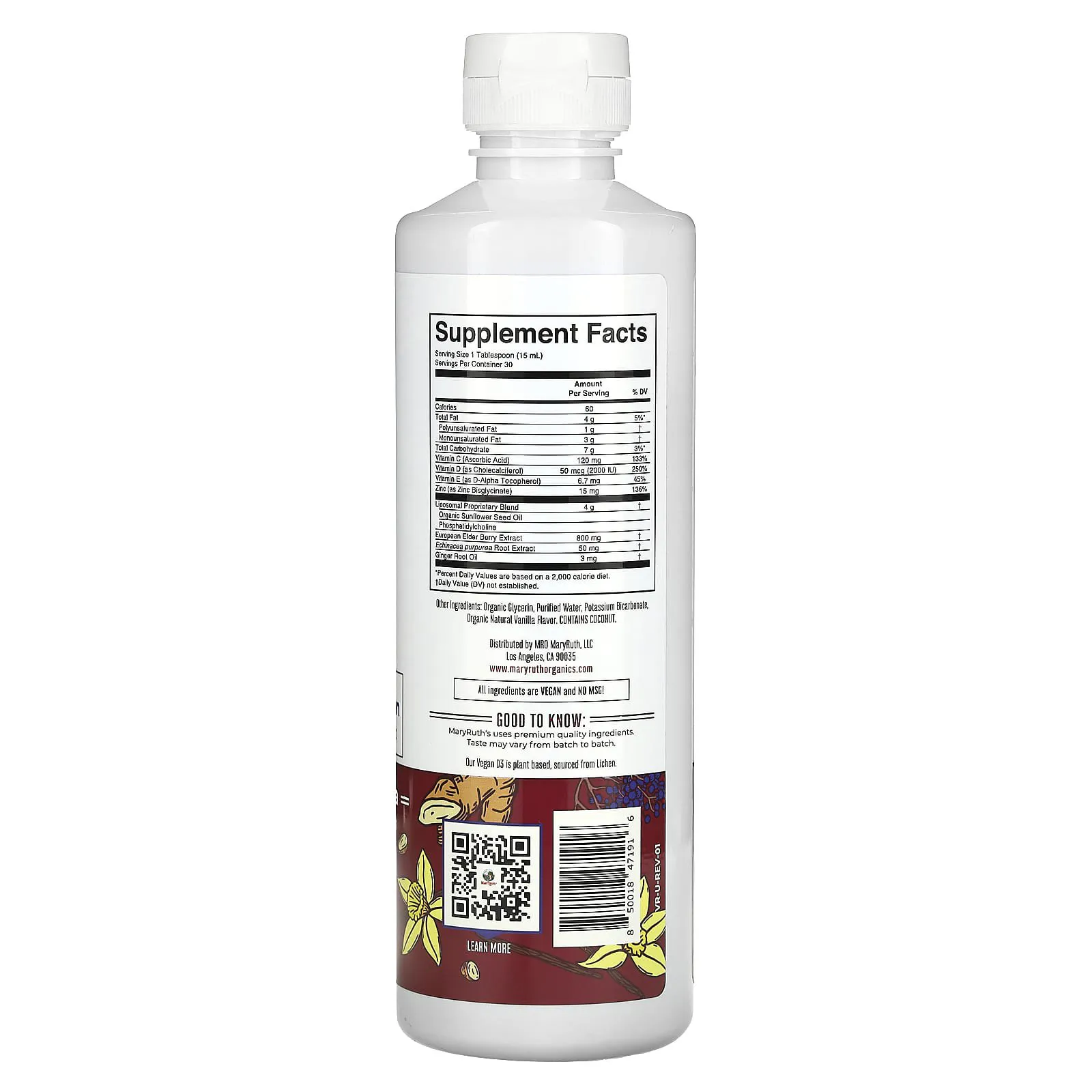 MaryRuth’s 7-in-1 Immunity Support yumshoq vanil va yengil zanjabil notalari bilan yoqimli ta’mga ega. Tarkibida sun’iy bo‘yoqlar, lazzat beruvchilar, shakar va GMO mavjud emas. Mahsulot veganga mos, glyutensiz, soya va sut mahsulotlarisiz tayyorlanadi.