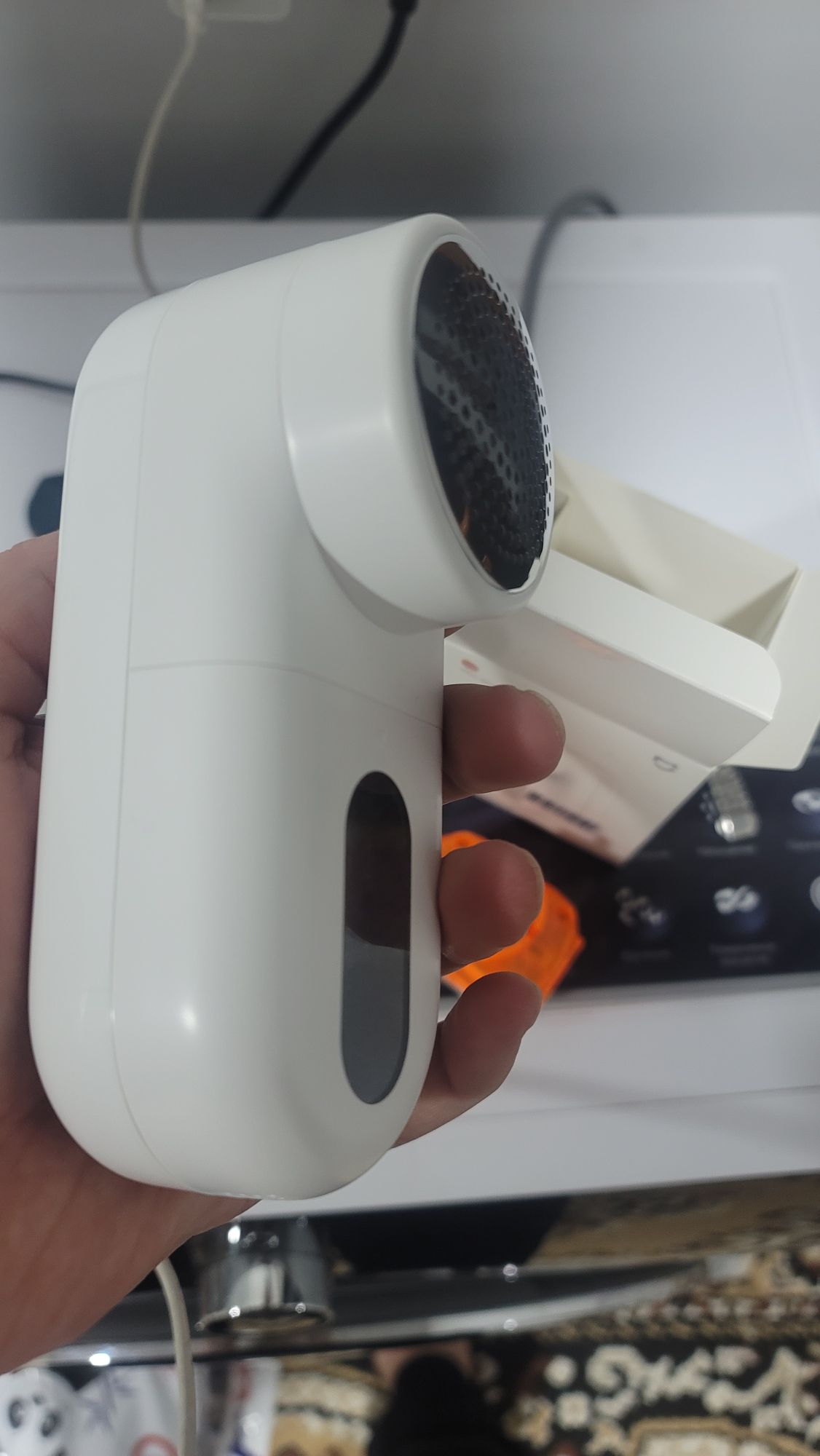 Ёмкость для катышков имеет полупрозрачное окошко, чтобы контролировать заполненность контейнера и своевременно очищать его. Небольшой светодиодный индикатор информирует о заряде батареи и режиме работы.