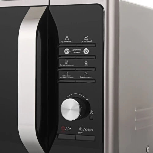 Boshqaruv paneli to‘rtta tugma va buriladigan mexanizm bilan jihozlangan bo‘lib, u orqali 30 ta avtomatik tayyorlash rejimi ga kirish mumkin. Foydali funksiyalar qatoriga tez muzdan tushirish, noo‘rin hidlarni yo‘qotish, avtomatik qizdirish va 99 daqiqalik taymer kiradi. Displey va soatlar jarayonni kuzatishni osonlashtiradi, ovoz signalini o‘chirish esa foydalanishni qulay qiladi.