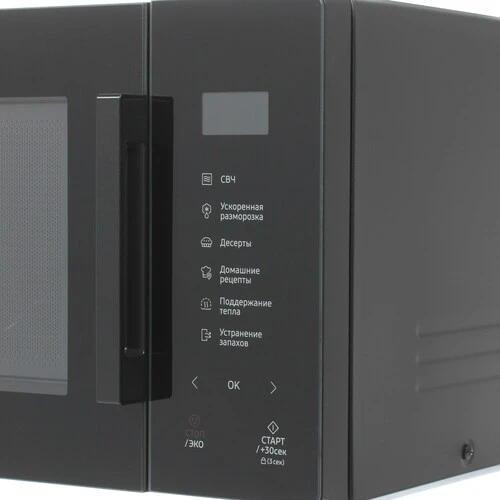 Mikroto‘lqinli pech Samsung MS23T5018AK klassik qora rangda ishlangan bo‘lib, har qanday oshxonaga zamonaviy ko‘rinish beradi. Kameraning hajmi 23 litr bo‘lib, katta diametrli idishlarda katta porsiyalarni qizdirish imkonini beradi. Tez va bir tekis qizdirishni 800 Vt quvvatli mikroto‘lqin va aylanuvchi stol ta’minlaydi. Kameraning ichki qoplamasi biokeramika emali bilan qoplangan bo‘lib, uni tozalash oson va ishlatish qulay.