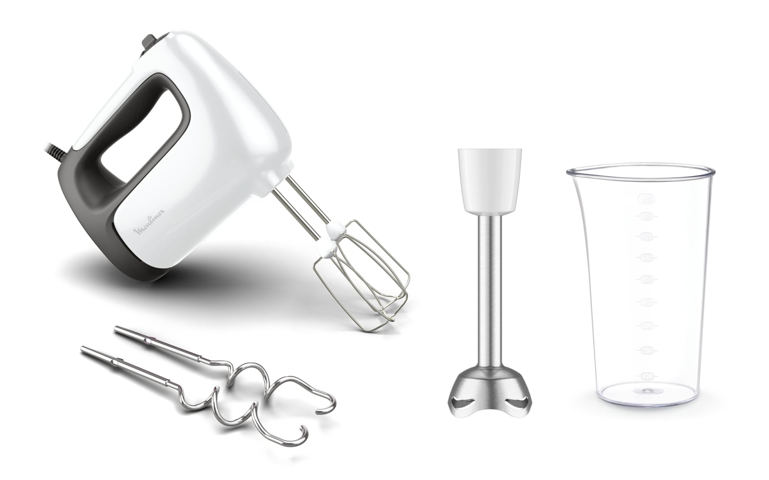 Qo‘l mikseri Moulinex PrepMix+ HM462110 uy oshxonasida intensiv va ko‘p funksiyali ishlatish uchun ishlab chiqilgan. U yuqori quvvat, qulaylik va keng qo‘shimchalar to‘plamini birlashtirib, eng turli oshxona vazifalarini bajarishga yordam beradi — yengil musdan tortib, zich xamirturush xamirgacha.