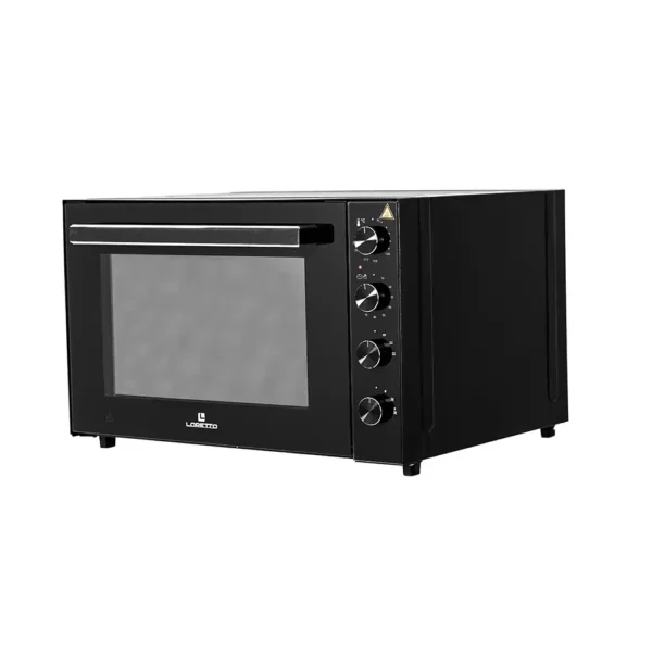 Elektr pishirgich Loretto LUX-7003GBL 70 litr hajm bilan uyni xavfsiz va funksional tarzda jihozlash imkonini beradi, pishiriq, go‘sht, baliq va boshqa taomlarni maksimal 230°C haroratda tayyorlash imkonini beradi; model aniq termostat, konveksiya, gril funksiyasi, oltita isitish rejimi va ikki TEN bir vaqtning o‘zida ishlashi orqali taomlarni teng pishirish imkonini beradi, ichki kamera oson tozalanadi, ikki qavatli issiqga chidamli oynalar, avtoo‘chirish, 90 daqiqalik taymer signal bilan, olinadigan eshik va ichki lampochka foydalanishda qulaylik va xavfsizlikni ta’minlaydi, to‘plamga ikki emalyatsiyalangan to‘rtburchak patnis va bitta chuqur doira patnis kiradi, bu LUX-7003GBL ni turli pishirish vazifalari uchun universal mini-pishirgichga aylantiradi.