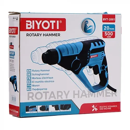 BIYOTI BYT-2001 – bu zamonaviy mini perforator bo‘lib, kichik o‘lcham va yuqori samaradorlikni birlashtiradi. Uning yengil vazni va ergonomik korpusi tufayli u uy sharoitida va montaj ishlarida keng qo‘llanadi. Asbob metall va qurilish materiallarida teshik ochish, shtrob qilish va yengil qirqish vazifalarini samarali bajaradi.
