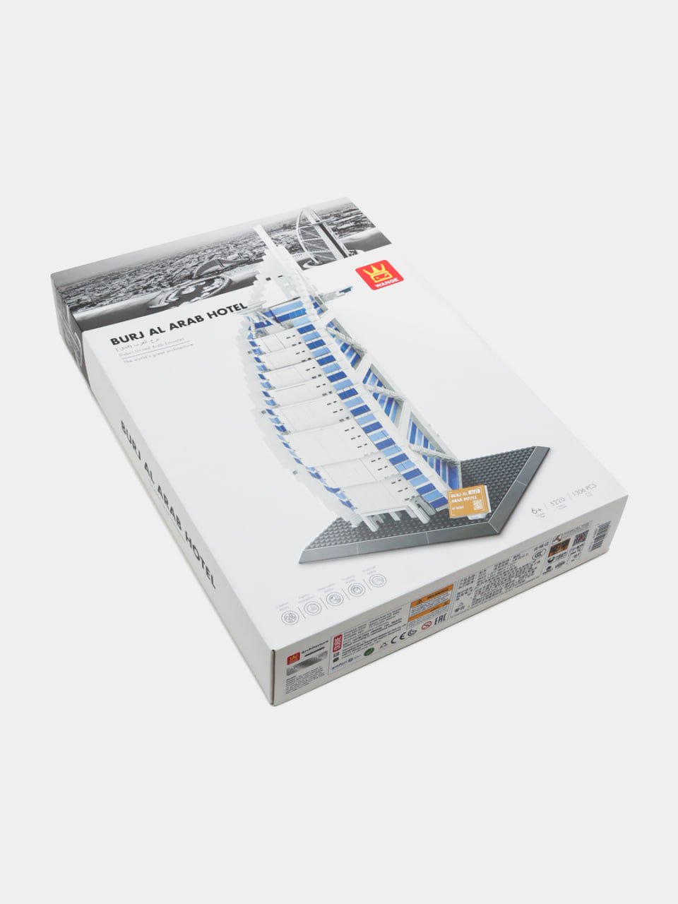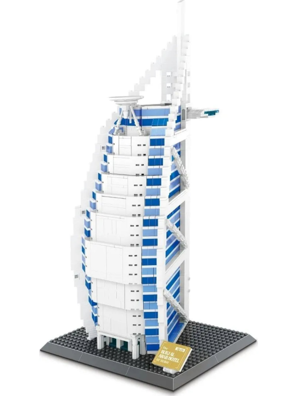 Model mashhur Burj al Arab mehmonxonasining kichik nusxasini tashkil qiladi. Bu otel sun'iy orolda joylashgan va dunyoning turli burchaklaridan odamlar tashrif buyuradigan joy hisoblanadi. Endi siz ushbu obidaning mini-versiyasini o‘zingiz yig‘ishingiz mumkin.