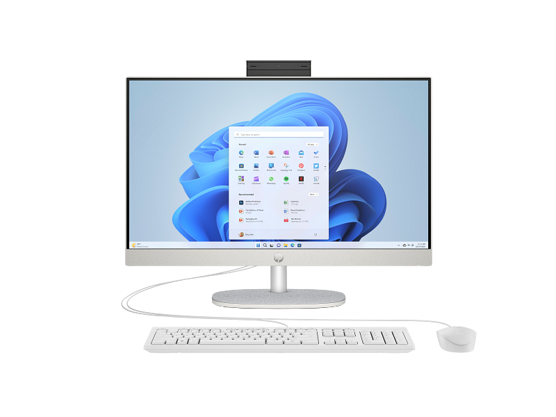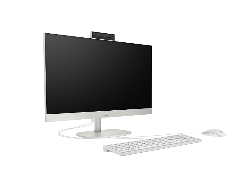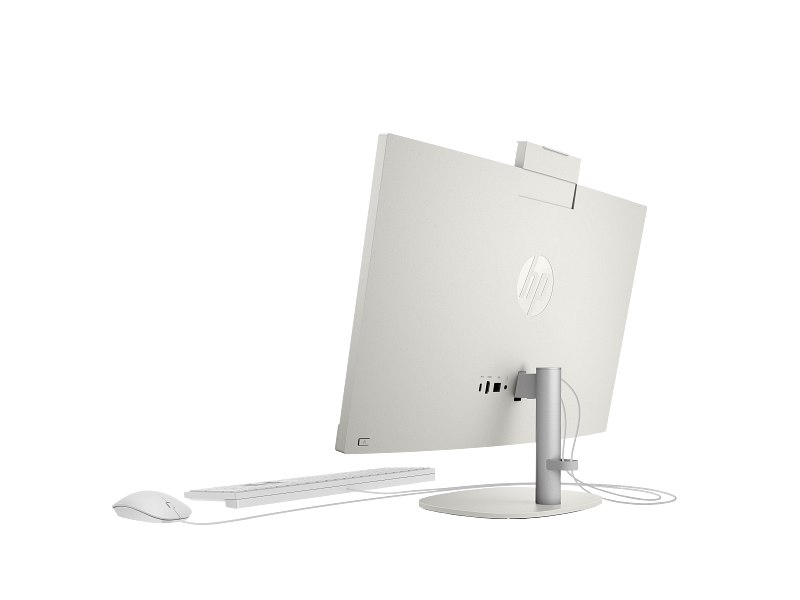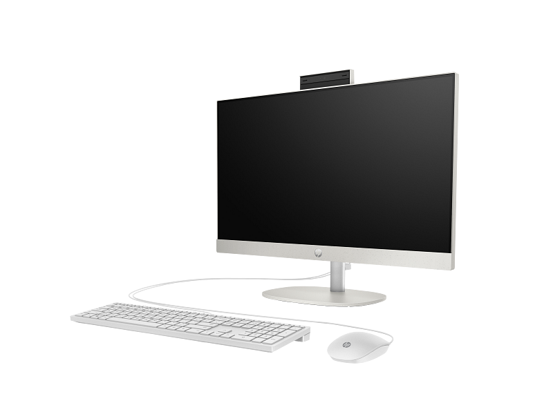 HP 24 AiO bilan oq simli HP 125 klaviatura va sichqoncha keladi. Fiksatsiyalangan stand barqaror joylashuvni ta’minlaydi. Optik disk mavjud emas, bu esa qurilmani engil va ixcham qiladi.
