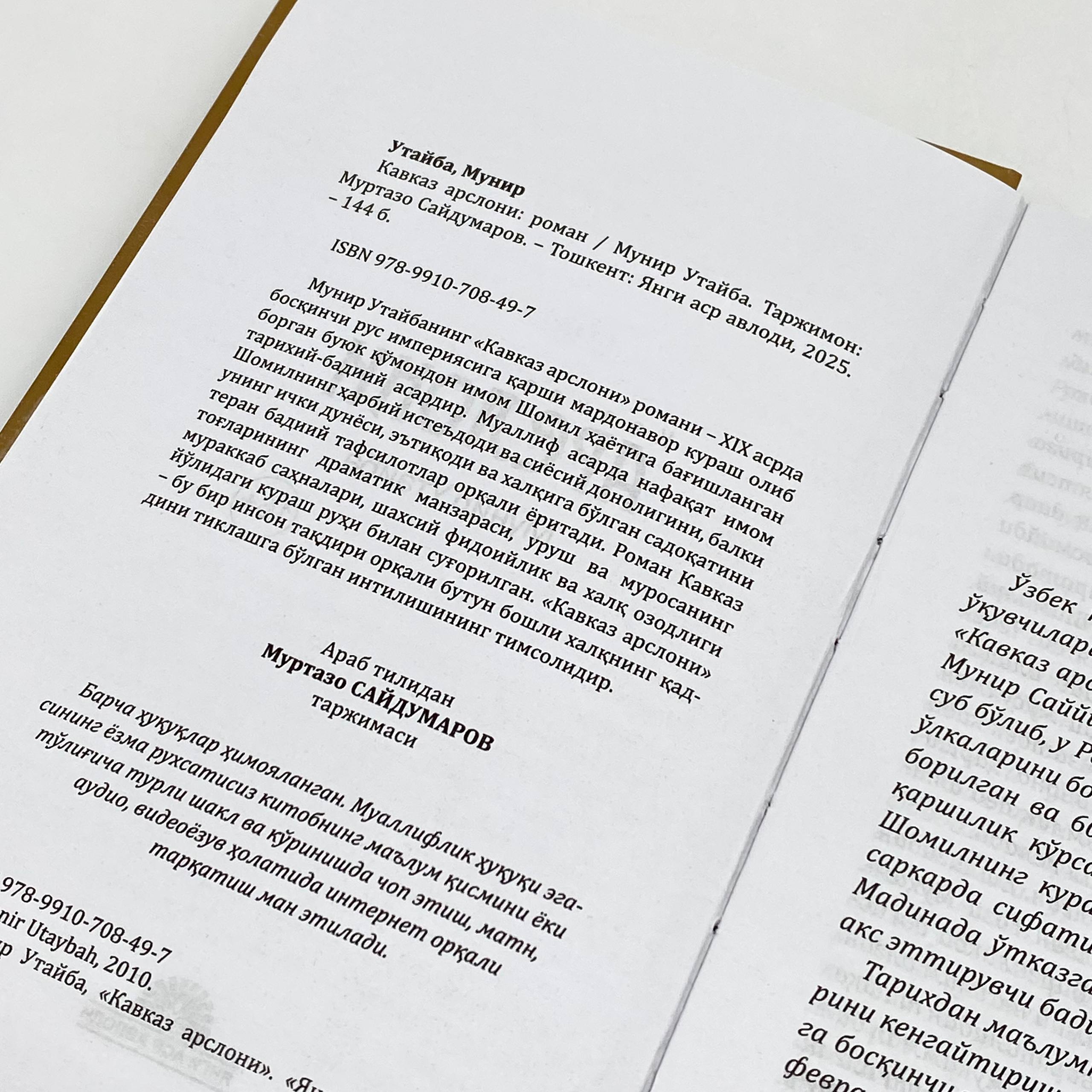 Ishlab chiqaruvchidan 1 yil kafolat. Mahsulotni 10 kun ichida qabul qilamiz va darhol pulni qaytaramiz.Munir Utaybaning «Kavkaz arsloni» romani - XIX asrda bosqinchi rus imperiyasiga qarshi mardonavor kurash olib borgan buyuk qo'mondon imom Shomil hayotiga bag'ishlangan tarixiy-badiiy asardir.