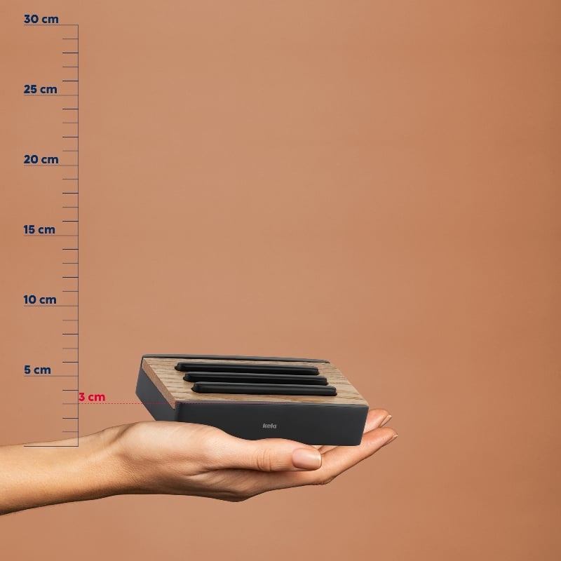 Kela 23686 — Cube kolleksiyasidan bo‘lib, hammomdagi har bir detal funksional va uslubli bo‘lishini istaganlar uchun mo‘ljallangan. Materiallar puxta tanlangan: mat qora plastmassa oson tozalanadi, eman yog‘och esa iliqlik va vizual chuqurlik qo‘shadi. Ichki qovurg‘alar sovunni quruq saqlaydi va shaklini uzoq muddat saqlab qoladi. Bu sovun idishi kundalik foydalanish uchun qulay bo‘lib, interyeringizga uyg‘un tarzda moslashadi va didingizni aks ettiradi.