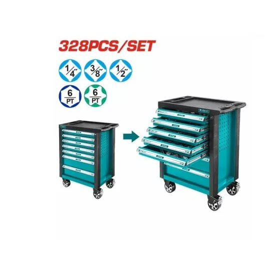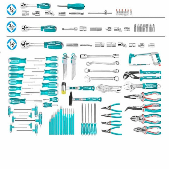 TOTAL THPTCS73281 – bu keng ko‘lamli va ko‘p funksiyali to‘plam bo‘lib, unda 328 ta asbob mavjud. U 7 ta tortmali mustahkam metall komod ichiga joylashtirilgan. Bunday to‘plam avtoservislar, ishlab chiqarish tsexlari, ustaxonalar va garajlar uchun ajralmas yechim bo‘lib, maksimal universallik va ish joyida tartibni ta’minlaydi.