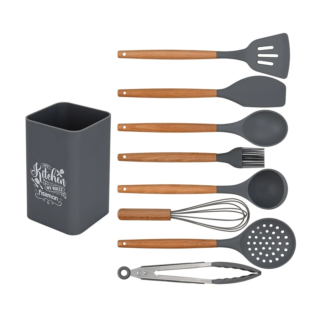 Тщательно подобранные кухонные изделия из силикона удовлетворят самые широкие потребности, изучайте и используйте инновационные кухонные инструменты и приспособления, которые приятно удивят Вас не только дизайном, но и эффективностью. 9 предметов — все что, только нужно для готовки.