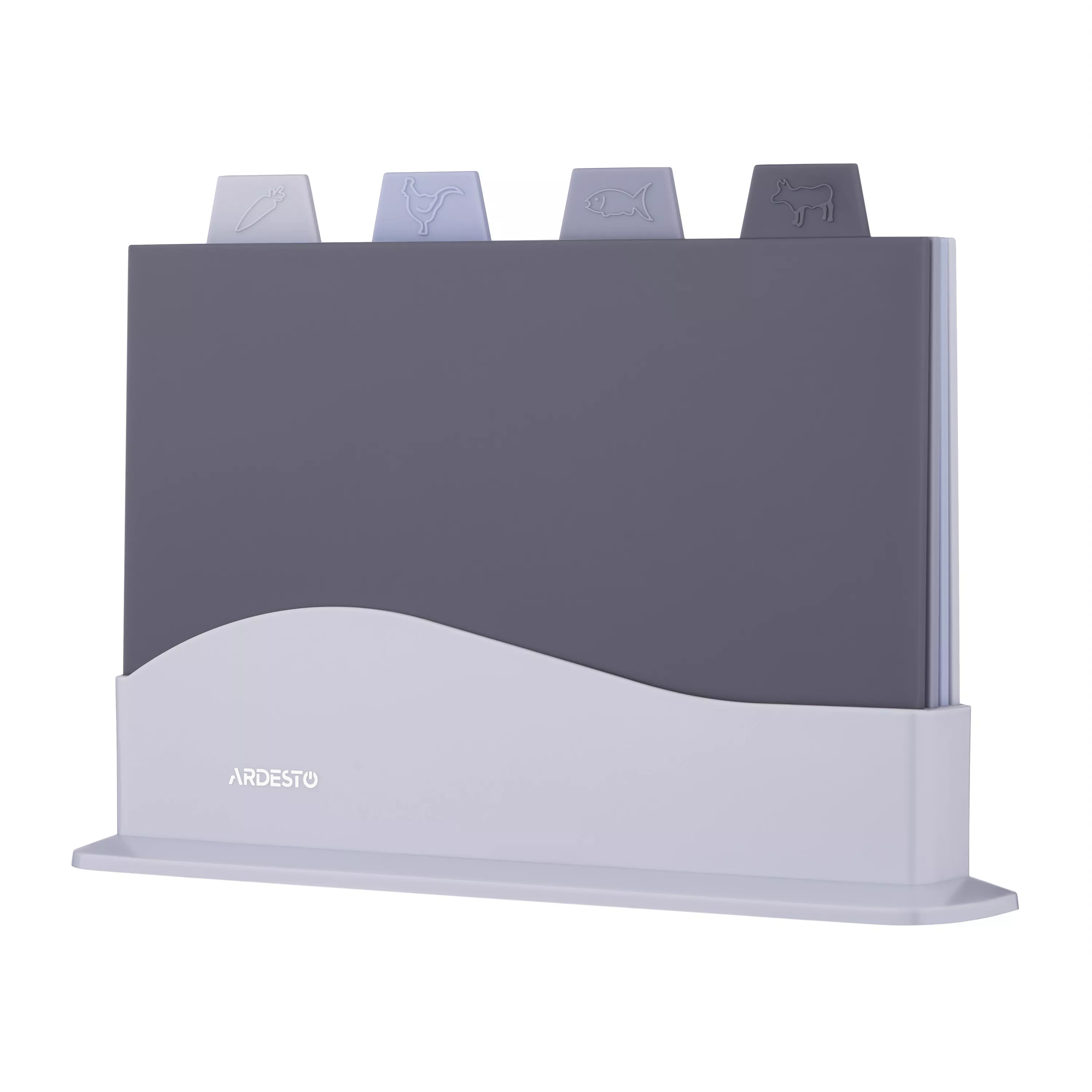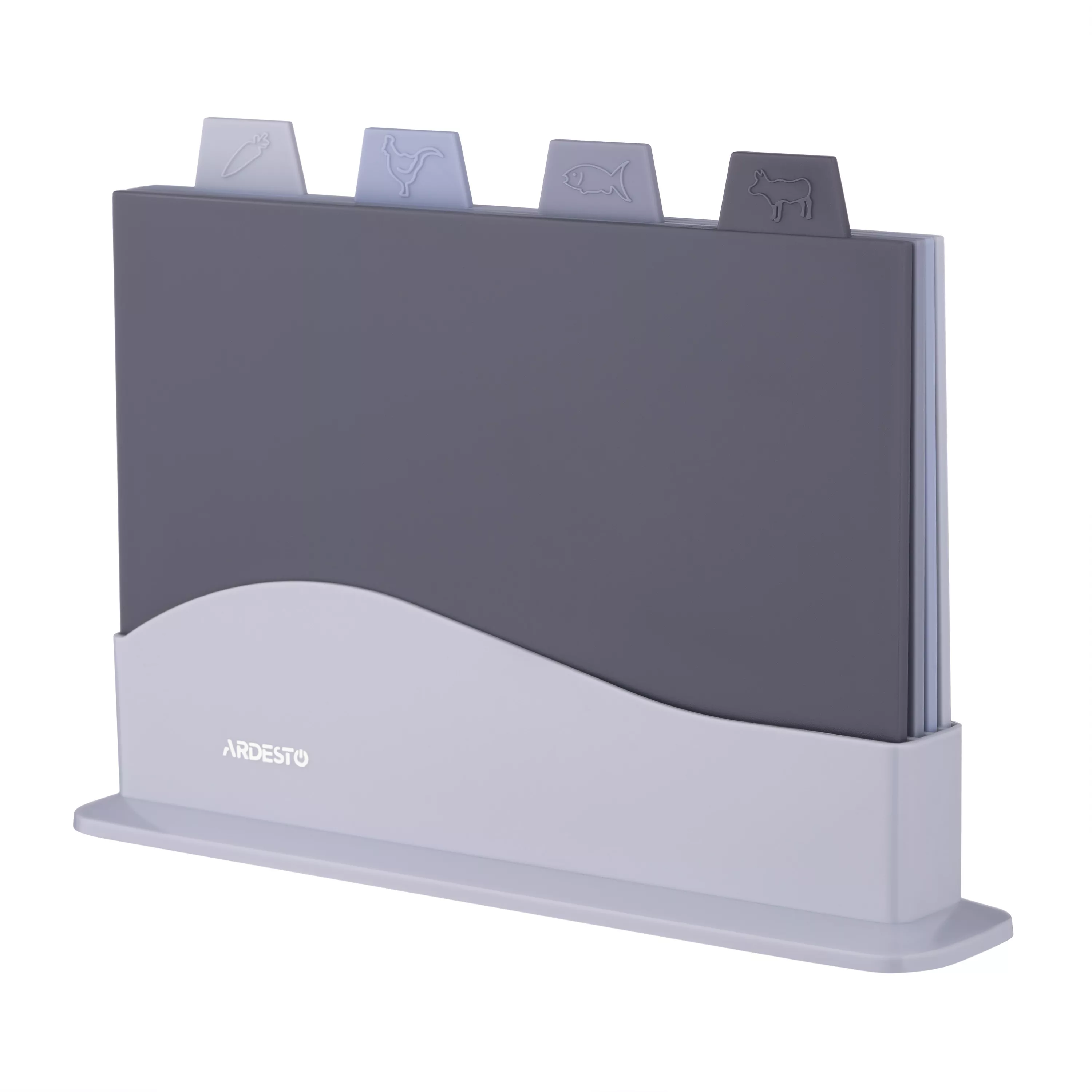 ARDESTO Fresh taglikli 4 dona kesish taxtalari to‘plami — har qanday oshxona uchun amaliy va zamonaviy aksessuar. Ushbu to‘plam funksionallik, qulay saqlash va zamonaviy dizaynni uyg‘unlashtiradi, tayyorlash jarayonini qulay va tartibli qiladi.