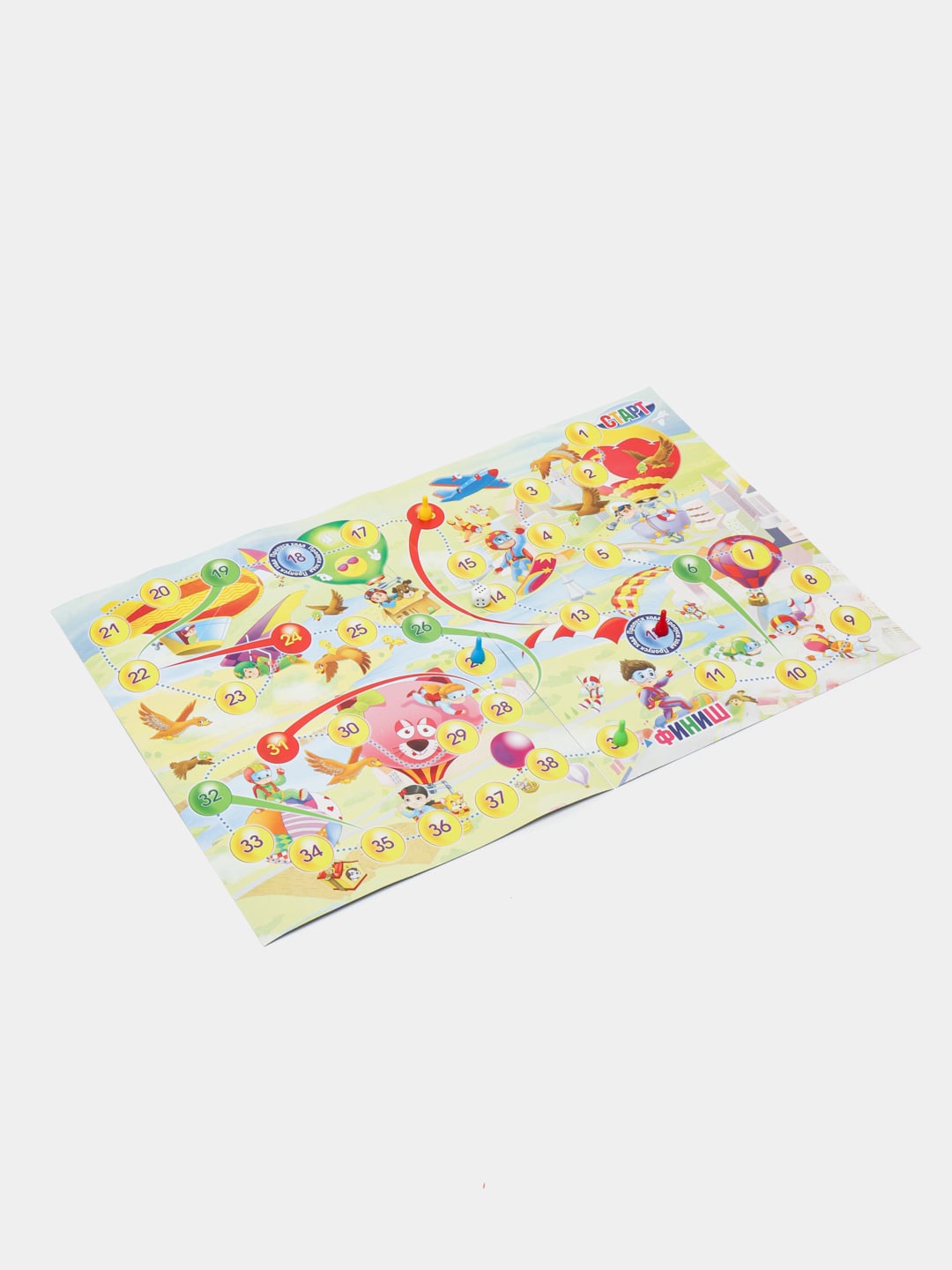 O‘yin maydoni 620 × 400 mm o‘lchamga ega bo‘lib, bir nechta ishtirokchilar uchun qulay va ko‘rinarli. To‘plamga kubik va fişkalar kiradi, shuning uchun o‘yin darhol boshlashga tayyor.