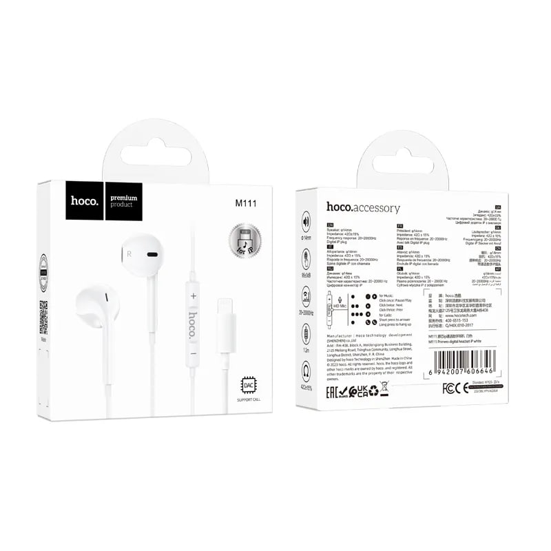 iOS qurilmalari uchun maxsus ishlab chiqilgan Hoco M111 modeli Lightning audio ulagichi bilan jihozlangan. Bu iPhone, iPad yoki iPod bilan barqaror va yuqori sifatli audio aloqani ta’minlaydi. Lightning ulagichi ishonchli va xavfsiz ulanishni ta’minlaydi, signal va xalaqitlarning yo‘qolish ehtimolini kamaytiradi. Hoco M111 bilan siz yuqori sifatli tovushdan to‘siqlarsiz bahramand bo‘lishingiz mumkin.