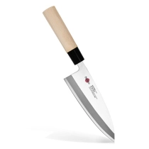 Традиционный японский нож Деба FISSMAN KENSEI HANZO 7"- имеет легкоузнаваемую форму клина и утолщенное лезвие, по обуху которого можно наносить удары рукой. Его основное предназначение - первичная разделка морской и речной рыбы, отсечение хвостов и плавников. Он прекрасно отражает традиции и культуру Японии, где рыба и морепродукты это основа питательного рациона. Приобрести такой нож стоит на любую кухню, где часто и с удовольствием готовят дары моря. Устойчивость к коррозии и долговечность благодаря особой технологии закалки металла холодом Korudo до оптимального уровня 58 HRC по шкале Роквелла. Лезвие исполнено из высокоуглеродистой японской стали AUS-8, эта сталь очень прочная и великолепно держит заточку. Нож вручную доведен на водном точильном камне зернистостью 6000 грит для безупречной остроты. Идеальный угол резки благодаря заточке 15-17 градусов на сторону. Рукоять ножа, согласно японским канонам, выполнена из натурального дерева и требует бережного обращения. Упаковка из текстурного картона премиум класса с серебряным тиснением не оставит равнодушным ни одного настоящего ценителя ножей высокого качества.