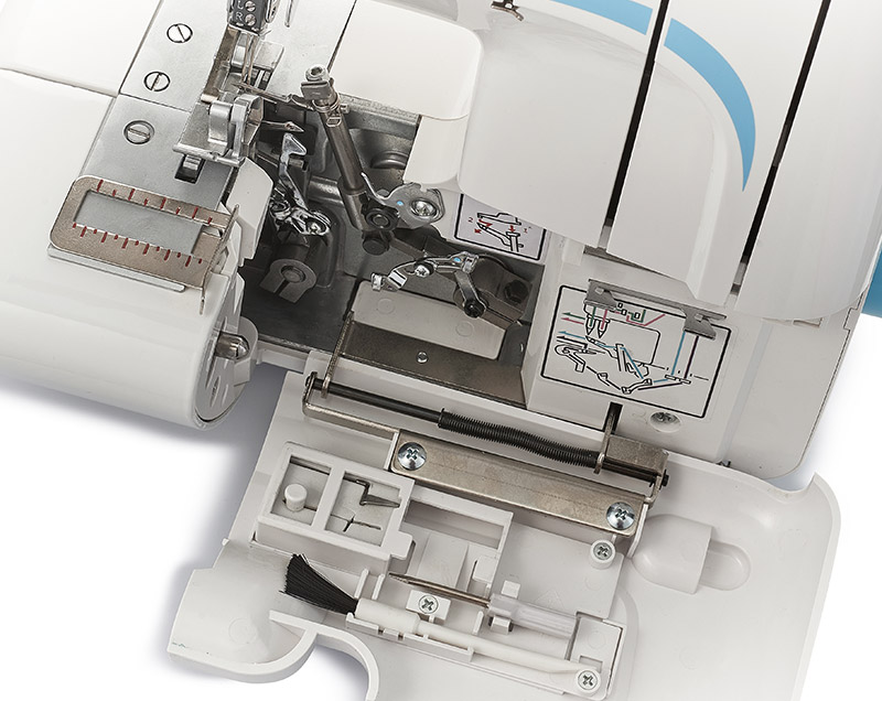Tikuv yo‘riqchisi va mato kesish kengligini 7 mm gacha sozlash tekis chet va materialni tejashni ta’minlaydi.