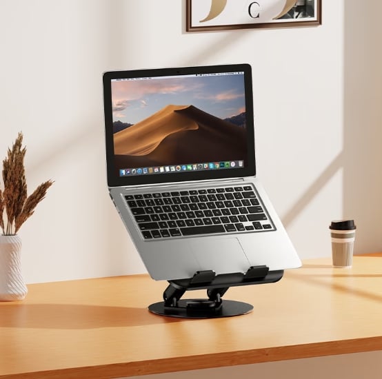 Ushlagich ikki o‘qli sozlash mexanizmi bilan jihozlangan bo‘lib, ish, onlayn uchrashuvlar yoki media tomosha qilish uchun qulay burchakni tanlash imkonini beradi. Buklanadigan konstruksiya esa uni saqlash va olib yurishni osonlashtiradi.