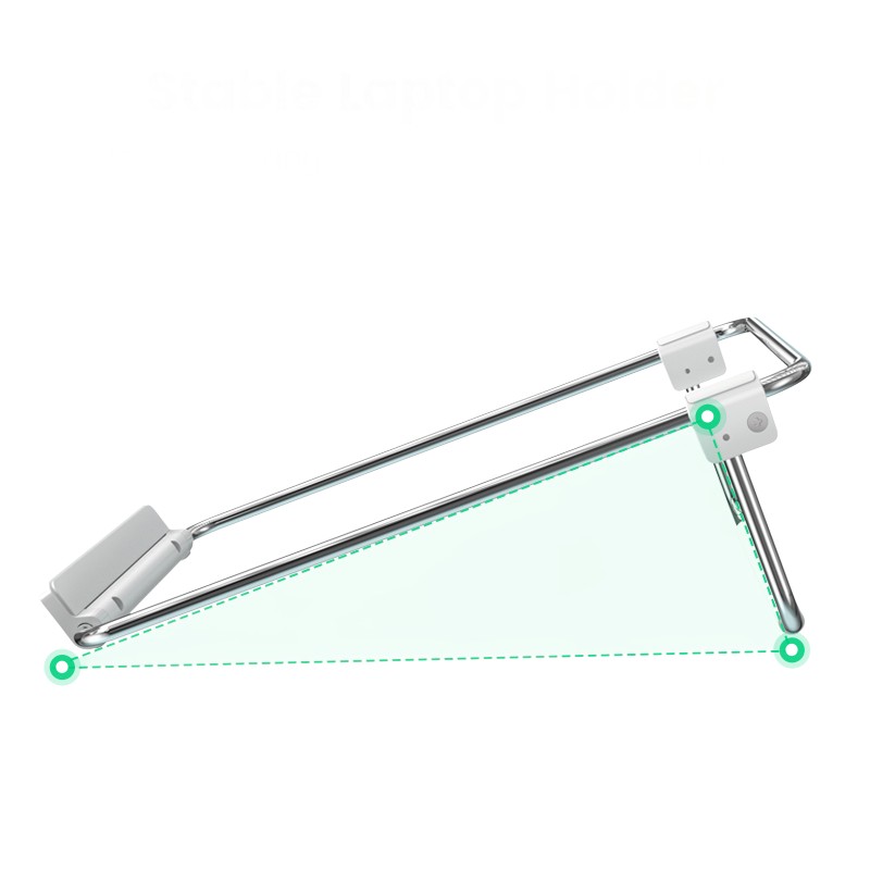 Yilg'in, ammo xavfsiz va barqaror. U mustahkam uchburchak dizayni tufayli noutbukingizni qulay balandlikka ko'taradi. Bundan tashqari, sirpanmaydigan silikon prokladkalar noutbukni joyida ushlab turadi va uni tirnalish va tirnalishlardan himoya qiladi. UGREEN ish stoli noutbuki maksimal 20 kg gacha bo'lgan og'irlikni ko'tara oladi.
