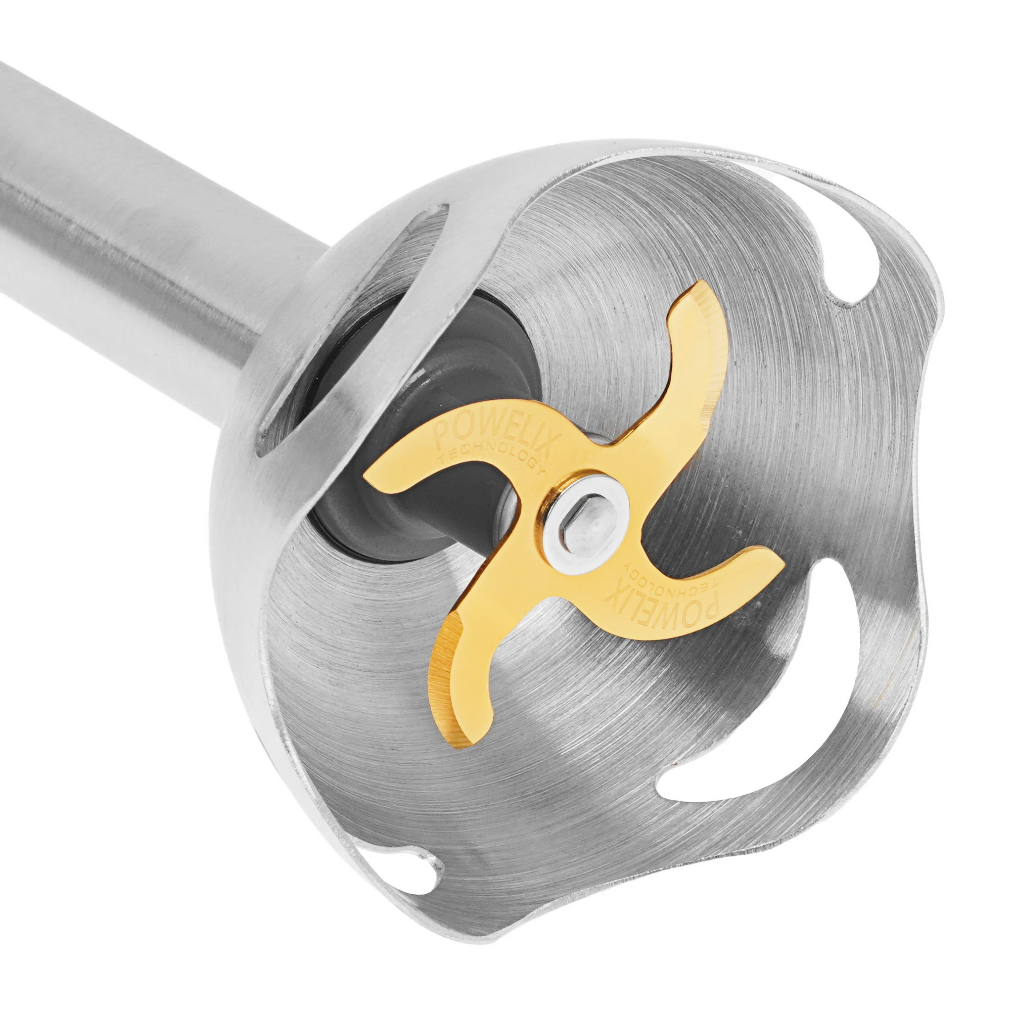 Ko‘p funksiyali nasadkalar — to‘plamda 500 ml hajmli maydalagich, 800 ml o‘lchov stakani, muz maydalagich nasadkasi va ko‘pchitgich (venchik) mavjud.