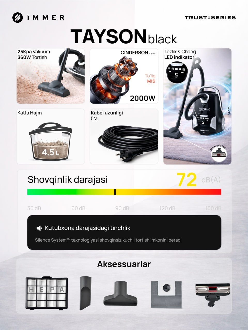 Immer Tayson Black — har kuni tez, chuqur va qulay tozalash uchun ishonchli yordamchi.
