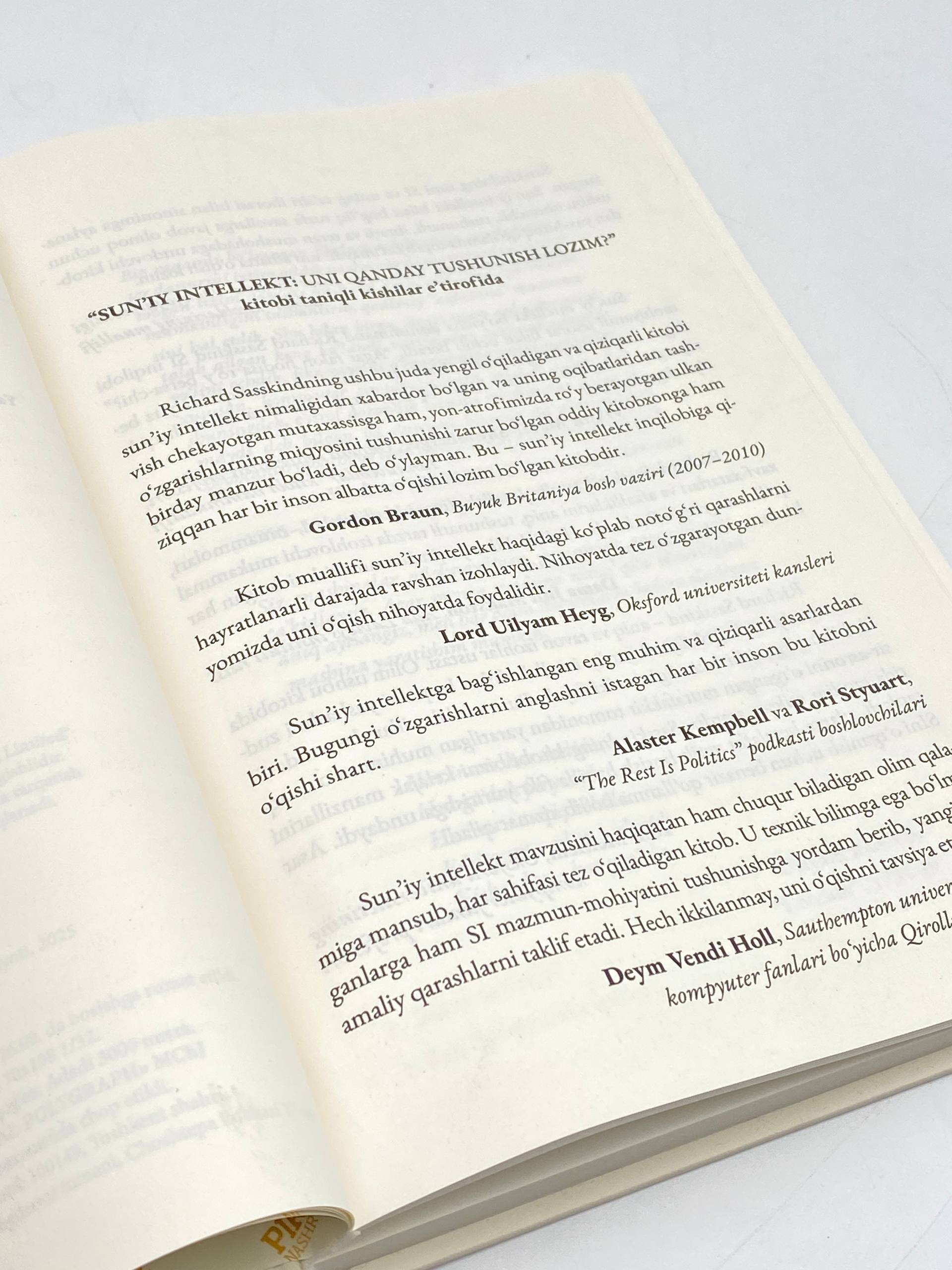 Richard Sasskind: Sun'iy intellekt: uni qanday tushunish mumkin? (qattiq) sizga ma’qul kelmadimi, yoki hali ham ikkilanyapsizmi? Mutaxassislarimiz tanlov qilishda sizga yordam beradi. Keling, mutaxassis bilan bog‘lanib, fikrini tinglaylik.