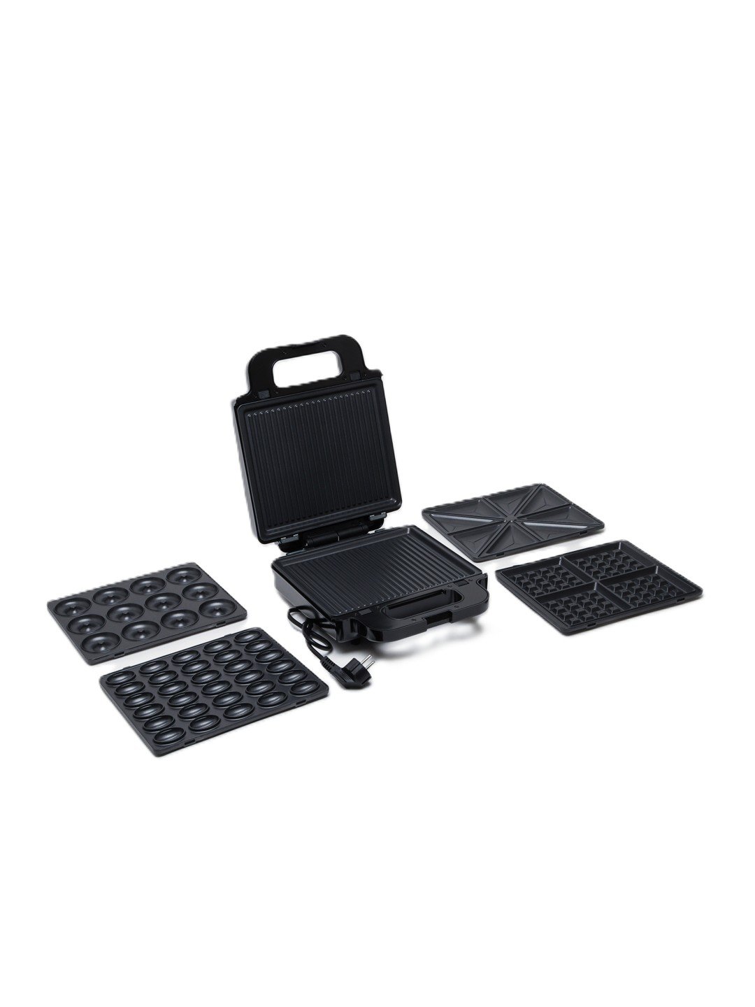 • 5 ta almashtiriladigan yopishmaydigan panel — vafli, sendvich, ponchik, go‘sht yoki sabzavot grilini tayyorlash imkonini beradi.