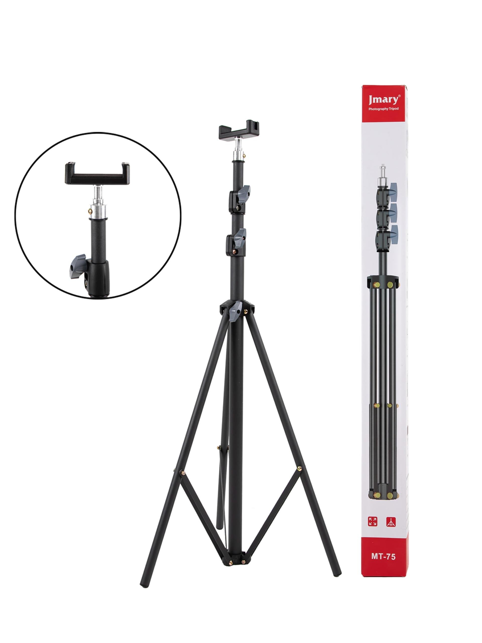 Jmary MT-75 — blogerlar, fotograf va videooperatorlar uchun eng yaxshi tanlov. Uning taxminan 1 kg og‘irligi uni istalgan joyga olib chiqishni osonlashtiradi. Yig‘ilgan holatda esa u ixcham bo‘lib, transportda joy egallamaydi. Shtativga yoritgich, halqali lampa, kamera yoki smartfon uchun adapter o‘rnatish mumkin. Uch bo‘limli konstruktsiya balandlikni aniq boshqarish imkonini beradi, mahkamlovchi qismlar esa uni ishonchli ushlab turadi.