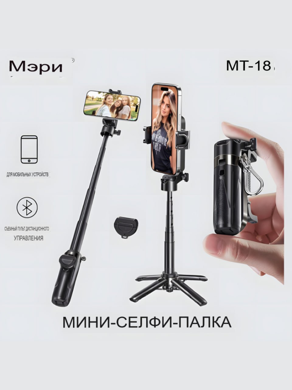 Ishlab chiqaruvchidan 1 yil kafolat. Mahsulotni 10 kun ichida qabul qilamiz va darhol pulni qaytaramiz.Jmary MT-18 — bu zamonaviy 3-in-1 qurilma: selfi tayoq, mini-tripod va masofadan boshqaruv funksiyasini birlashtirgan ixcham hamroh. Yengil va ixcham dizayni bilan u doim yoningizda bo‘ladi, lekin imkoniyatlari professional darajada keng.