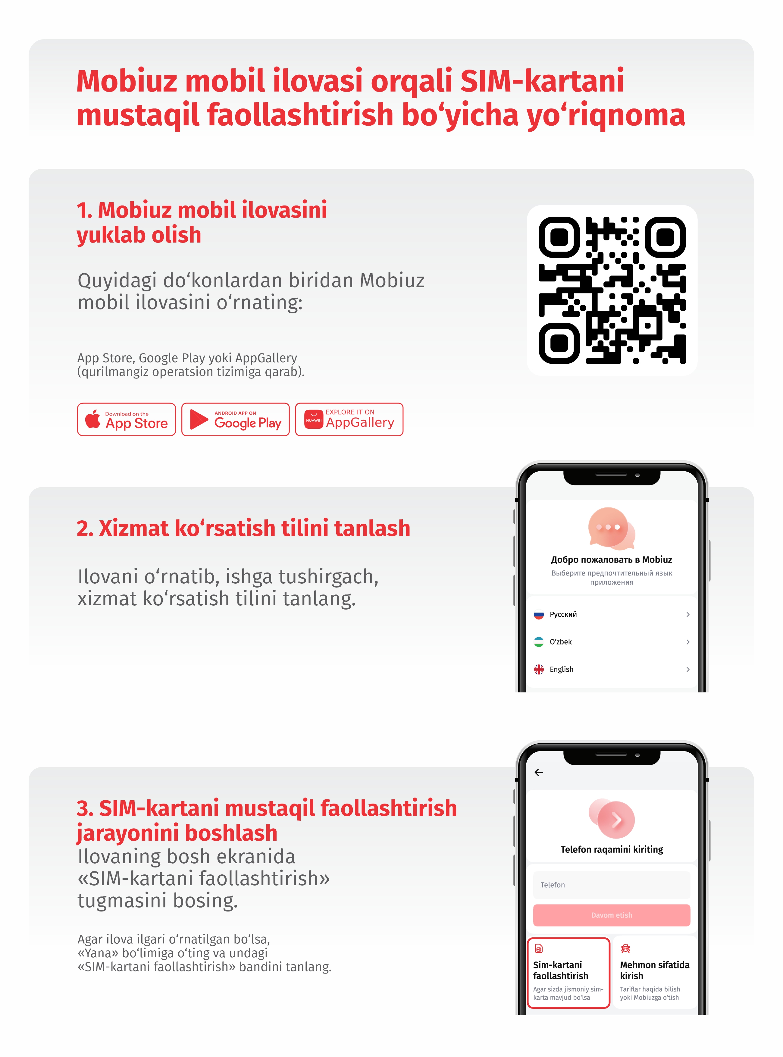 SIM-kartani faollashtirish bo‘yicha yo‘riqnoma: