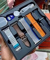 Qutida nima bor aqlli soat, 5 ta tasma, zaryadlovchi kabel, hisoblagich