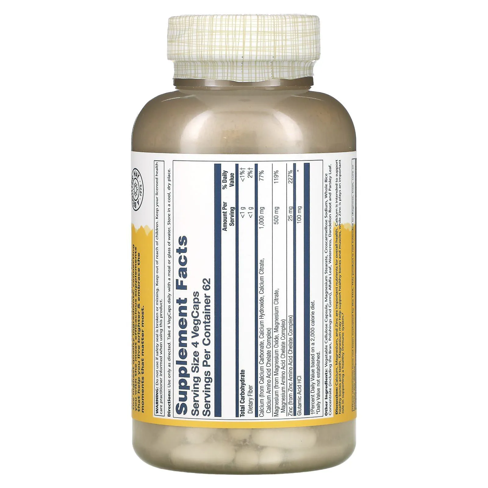 Bu kompleks suyak, tish va immun tizimi sog‘ligini qo‘llab-quvvatlovchi tabiiy kalsiy–magniy–sink formulasi bo‘lib, veganlar uchun mos, laboratoriyada sinovdan o‘tgan va mineral so‘rilishini yaxshilovchi maxsus tarkibga ega.