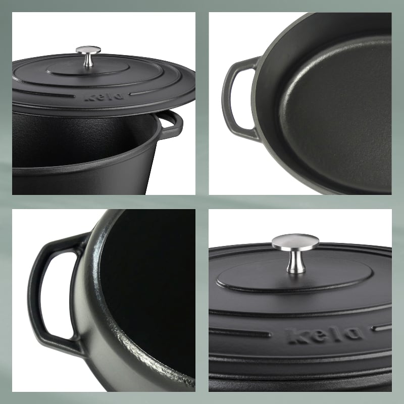KELA Calido soteynigi — bu pishirish zavqga aylanuvchi lahzalar uchun yaratilgan: kuchli olovda qizartirishdan boshlab, qopqoq ostida sekin dimlashgacha. Cho‘yan ideal qobiq hosil qiladi, so‘ng taomni bir tekis pishirib, suvli va to‘yimli holatda saqlaydi. Emallangan qoplama esa parvarishni soddalashtiradi va idishning xizmat muddatini uzaytiradi.