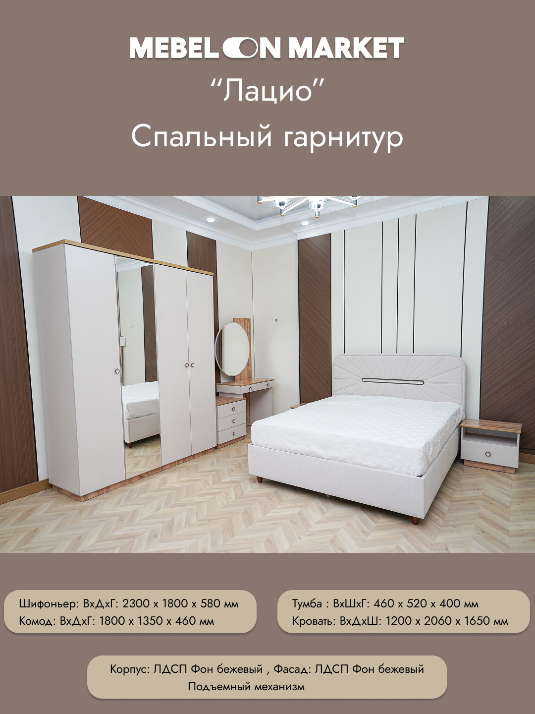 Grand Miks tomonidan ishlab chiqarilgan “Latsio” yotoqxona garnituri — qulaylik, nafis dizayn va mustahkamlikni birlashtirgan mukammal tanlov. Garnitur yuqori sifatli, mustahkam Rossiya plitasidan tayyorlangan bo‘lib, iliq bej rang har qanday interyerga uyg‘unlik va shinamlik bag‘ishlaydi.