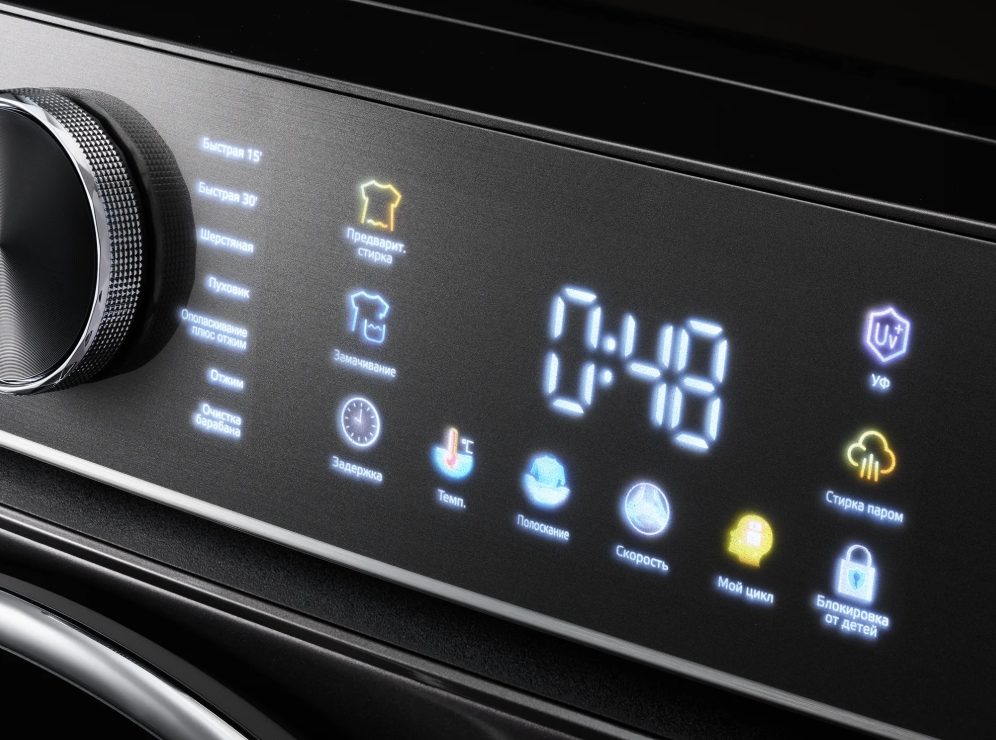 Dasturlar: smart, yumshoq yuvish, ko‘ylaklar, sport kiyimi, super spa, adyol, ichki kiyimlar, tezkor 15’, rapid 30’, jun, pufakli kiyimlar, chayish+siqish, siqish, barabanni tozalash