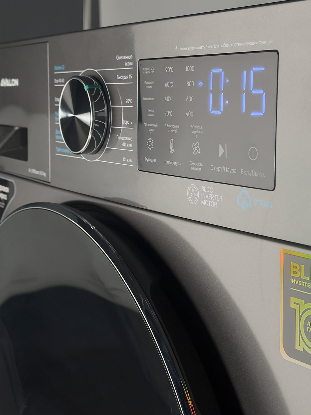 Inverter dvigatel bilan jihozlangan kir yuvish mashinasi oddiy motorlarga nisbatan ancha sokin va barqaror ishlaydi. Inverter texnologiyasi tebranishlarni kamaytiradi, qurilmaning xizmat muddatini uzaytiradi va elektr energiyasini tejaydi. Buni A+++ energiya samaradorligi klassi tasdiqlaydi.