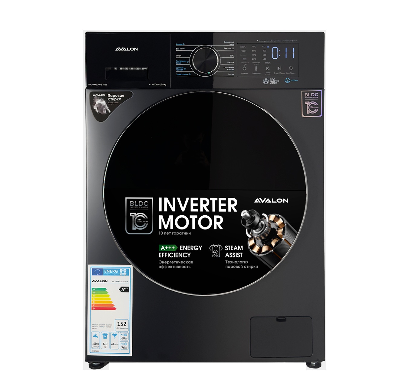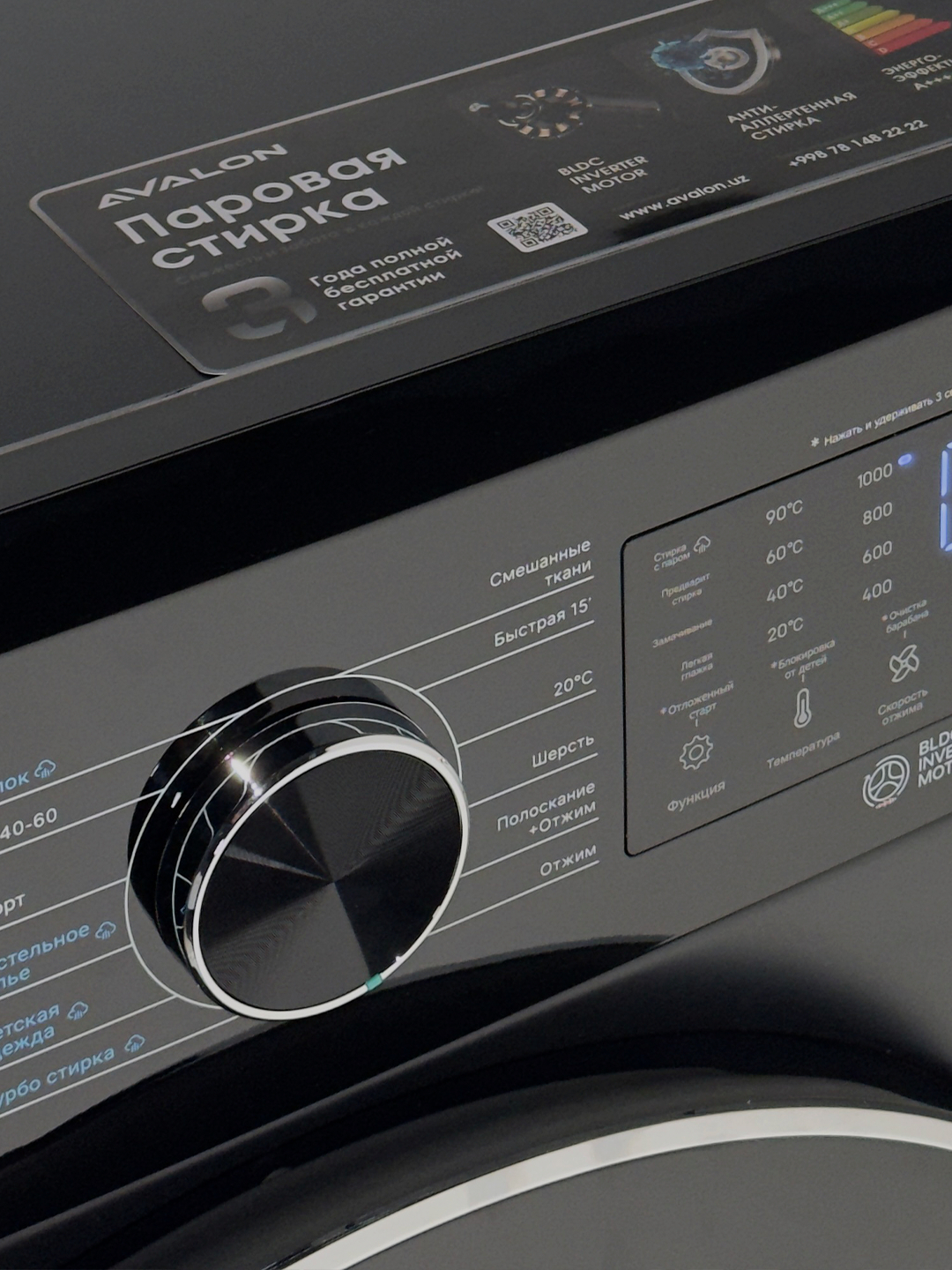 Ushbu modelning asosiy afzalligi — BLDC Inverter Motor, ya’ni yangi avlod cho‘tkasiz inverter dvigateli. U kir yuvish mashinasining sokin va barqaror ishlashini ta’minlaydi, tebranish va eskirishni kamaytiradi hamda qurilmaning xizmat muddatini sezilarli darajada uzaytiradi. Past energiya sarfi tufayli mashina A+++ energiya samaradorligi klassiga mos keladi.
