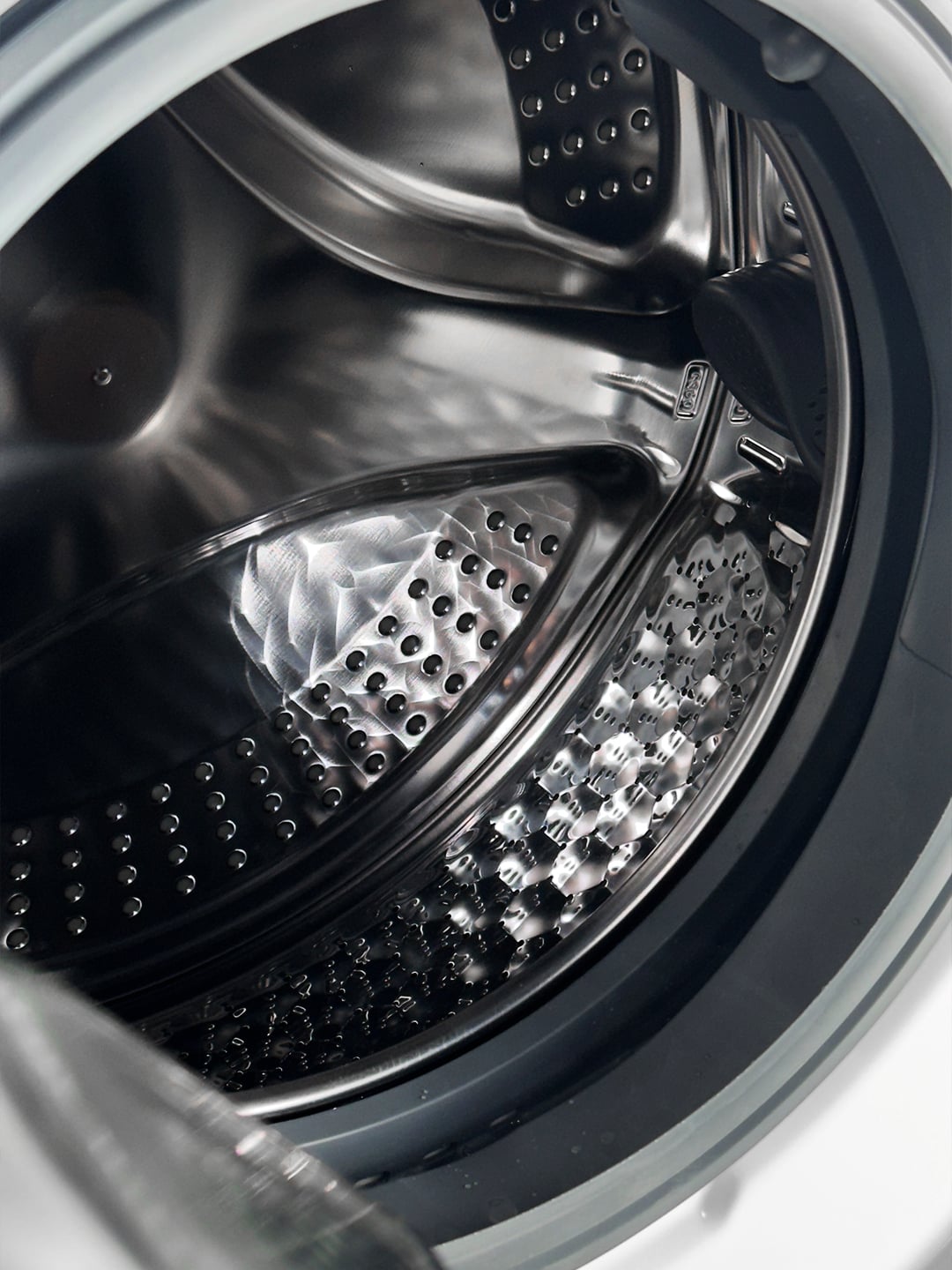 Ushbu modelning asosiy afzalligi — BLDC Inverter Motor, ya’ni yangi avlod cho‘tkasiz inverter dvigateli. U kir yuvish mashinasining sokin va barqaror ishlashini ta’minlaydi, tebranish va eskirishni kamaytiradi hamda qurilmaning xizmat muddatini sezilarli darajada uzaytiradi. Past energiya sarfi tufayli mashina A+++ energiya samaradorligi klassiga mos keladi.