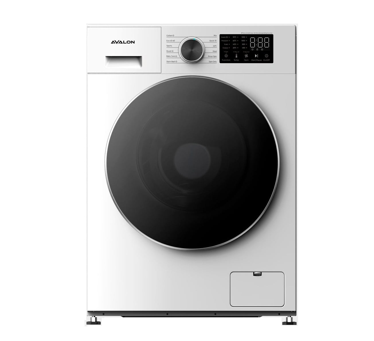 Avalon AVL-WM 8040 Flat 12 ta yuvish dasturi bilan jihozlangan bo‘lib, jumladan tezkor yuvish rejimini ham o‘z ichiga oladi. Sensorli boshqaruv paneli va displey yordamida barcha sozlamalarni oson va tez tanlash mumkin. Barabanni tozalash funksiyasi mashinaning ichki tozaligi va gigiyenasini ta’minlaydi.