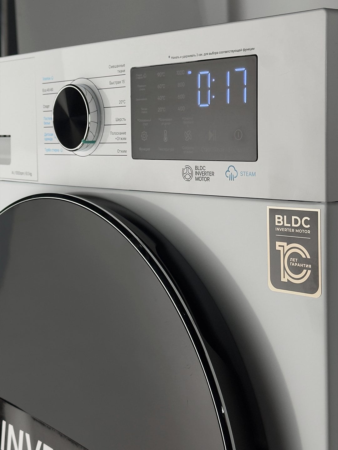 Kir yuvish mashinasi inverter dvigatel bilan jihozlangan bo‘lib, sokin va barqaror ishlaydi, tebranishlarni va detalarning eskirishini kamaytiradi. Ushbu texnologiya elektr energiyasi sarfini kamaytiradi va qurilmaning xizmat muddatini uzaytiradi. Mashina A+++ energiya samaradorligi klassiga mos keladi.
