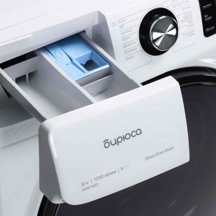 Стиральная машина с мотором Direct Drive. Управление опциями стиральной машины Бирюса WM-SM814/03 осуществляется посредством сенсорных элементов и поворотного механизма. Стиральная машина Бирюса WM-SM814/03 имеет 14 программ стирки разных типов ткани. Вы можете заблокировать управление от детей и отсрочить запуск стирки до 24 ч.