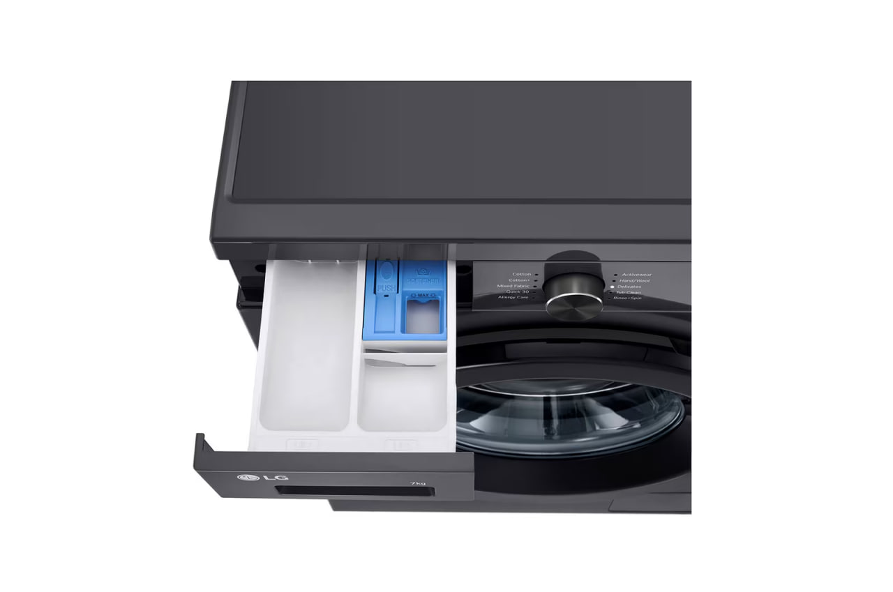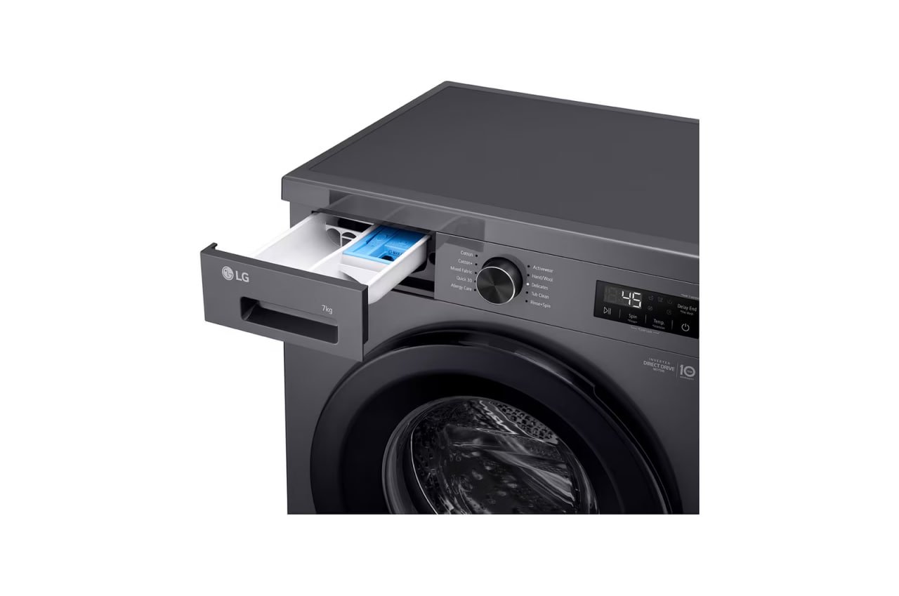 Kir yuvish mashinasi LG F2Y1HYP6J frontal yuklama bilan 7 kg kir uchun mo‘ljallangan — 2–3 kishilik oila uchun a’lo tanlov. Uning atigi 44 sm chuqurligi tufayli model hattoki kichik hammom yoki oshxonaga ham bemalol sig‘adi.