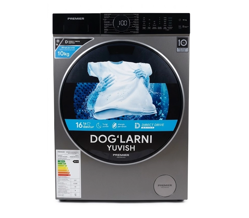 Premier PRM 10F1230/DS 10 kg kir yuvish mashinasi – yuqori samaradorlik va buyumlarga muloyim munosabat