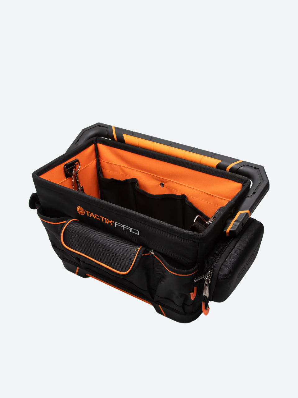 TACTIX 323510P asboblar sumkasi — ustalar uchun ishonchli yechim bo‘lib, asboblarni tartibli va qo‘l ostida saqlash imkonini beradi. Katta ichki bo‘lim hamda tashqi cho‘ntaklari katta va kichik aksessuarlarni joylashtirish uchun juda qulay.