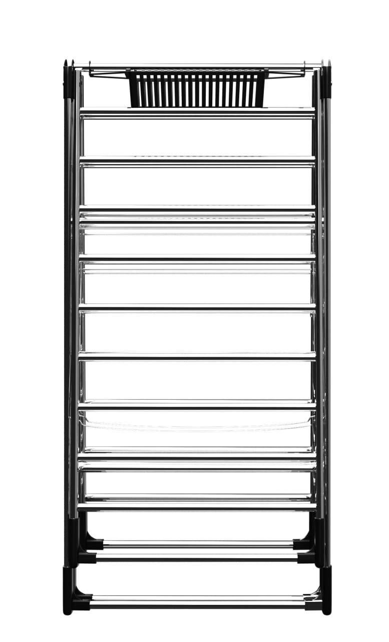 Konstruktsiya korroziyaga chidamli metalldan tayyorlangan bo‘lib, namlik, harorat o‘zgarishi va mexanik ta’sirlarga bardoshli. Mustahkamlangan plastmassa biriktirgichlar quritgichning har qanday yuklamada ham barqaror turishini ta’minlaydi.