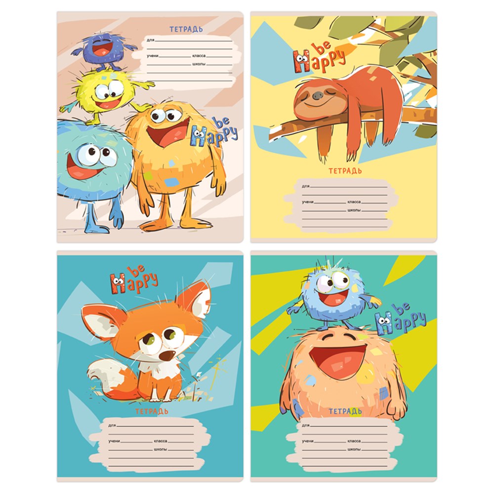 BG "Be Happy" daftar, 12 varaq, katakchali — bu maktab, uy yoki ofis uchun qulay va rang-barang daftar.