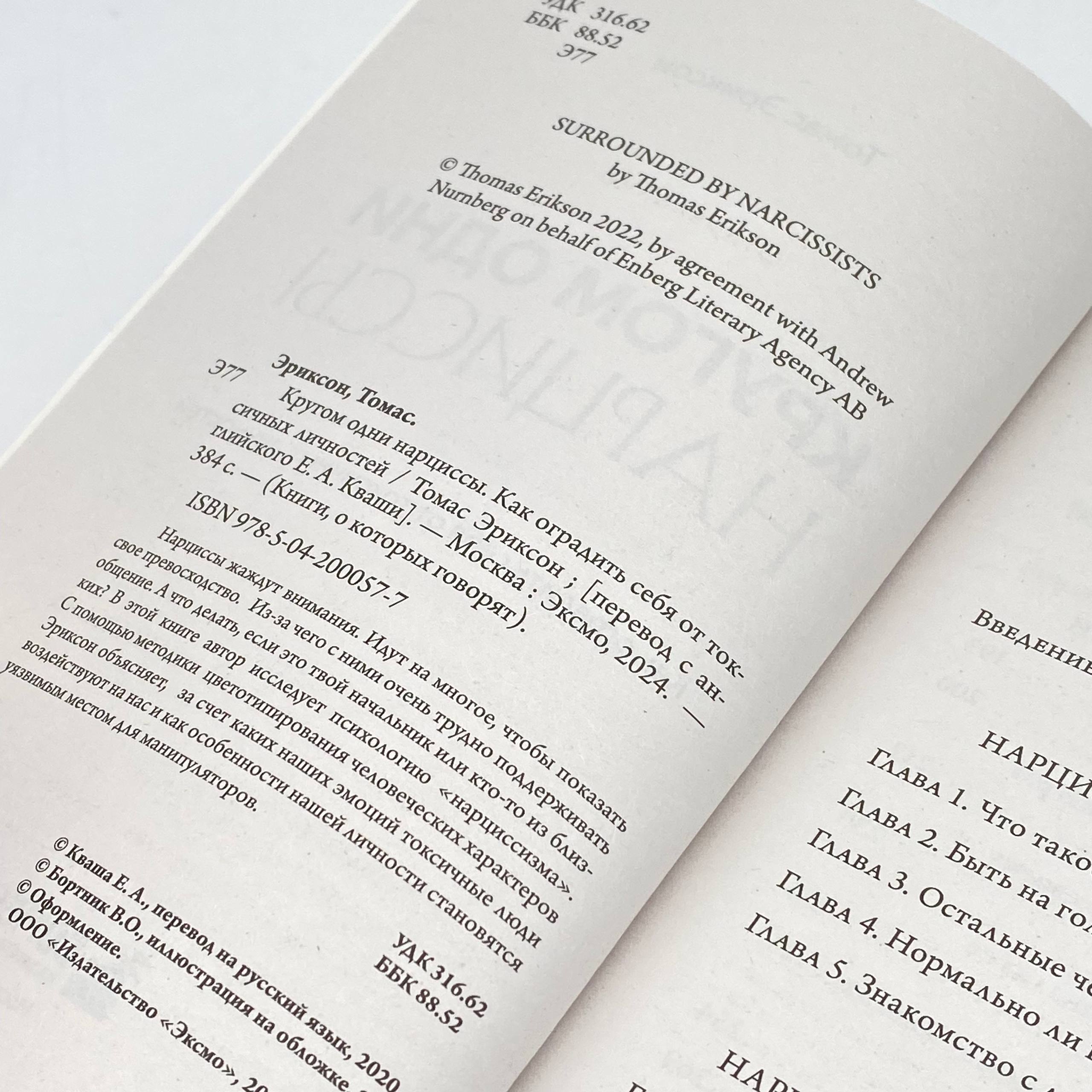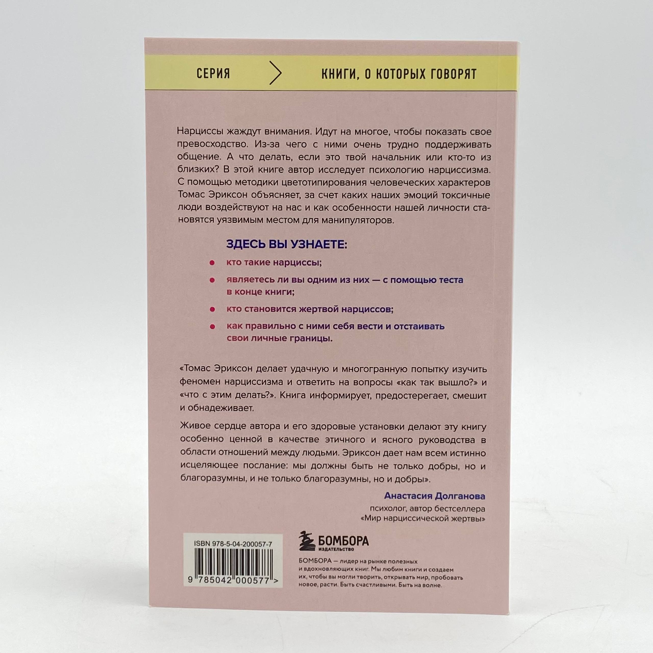 Эта книга - универсальная отмычка к личности любого человека и лежит на столе каждого шведского руководителя, учителя и журналиста. Ее автор, знаменитый психолог Томас Эриксон, делит всех людей на четыре цветовых типа. Он описывает логику поведения, темперамент, систему ценностей "красных", "желтых", "зеленых" и "синих". Объясняет, как находить с ними общий язык, вести проекты, разрешать конфликты и заводить партнерские отношения. "Кругом одни нарциссы. Как оградить себя от токсичных личностей" Нарциссы жаждут внимания. Идут на многое, чтобы показать свое превосходство. Из-за чего с ними очень трудно поддерживать общение. А что делать если это твой начальник или кто-то из близких? В этой книге автор исследует психологию "нарциссизма". С помощью методики цветотипирования человеческих характеров Эриксон объясняет, за счет каких наших эмоций токсичные люди воздействуют на нас и как особенности нашей личности становятся уязвимым местом для манипуляторов.
