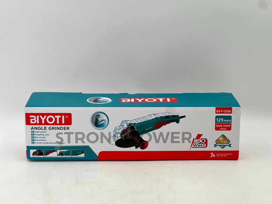 BIYOTI BYT-1258 – bu 1100 Vt quvvatga ega elektr “bolgarka” bo‘lib, turli materiallarga sifatli ishlov berish uchun ishlab chiqilgan. U yuqori unumdorlik, ishonchlilik va qulaylikni birlashtirib, professional ustalar hamda uy sharoitida ishlovchi havaskorlar uchun birdek foydali tanlov hisoblanadi.