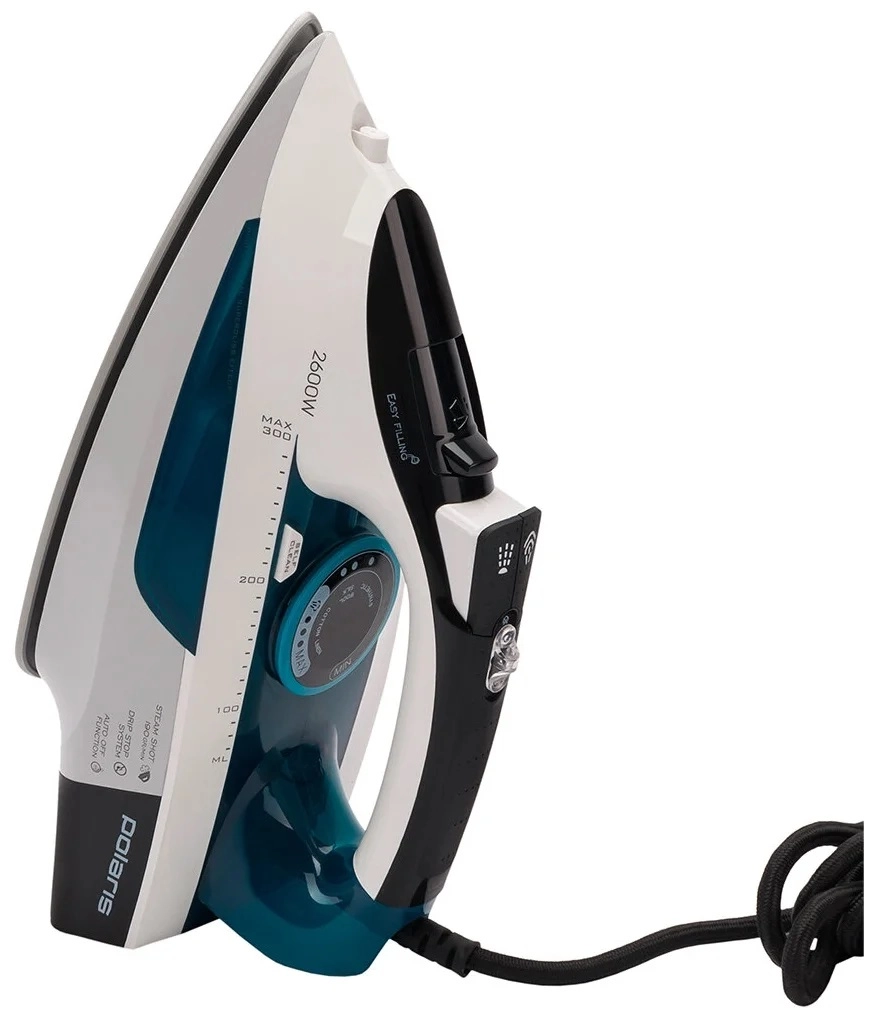 Противокапельная система, функция самоочистки и система защиты от образования накипи помогают поддерживать работоспособность утюга. Сетевой шнур длиной 3 м с шарнирным креплением способствует свободным движениям и повышению удобства. А для безопасности в Polaris PIR 2695AK реализована технология автоматического отключения.